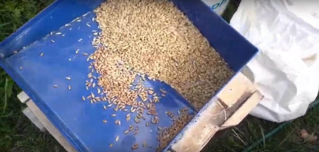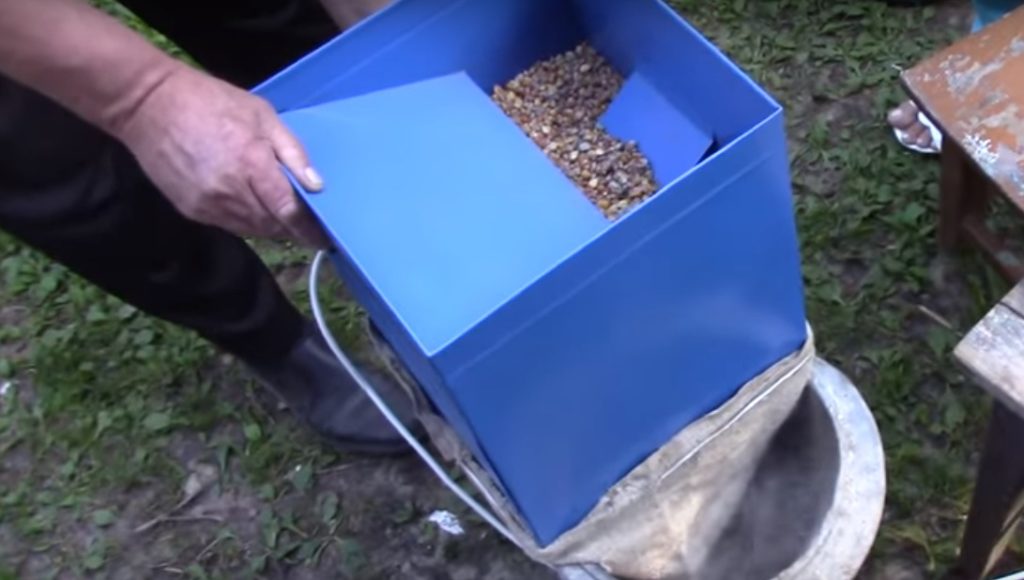 Most often, machines, the scope of which is a house or a small farm, are built in this way: crushed grain is poured out from the bottom, the machine must be placed on a stand made by the owner himself, a container for finished feed, and a hole in the stand. Or there are options that are put on the bucket.