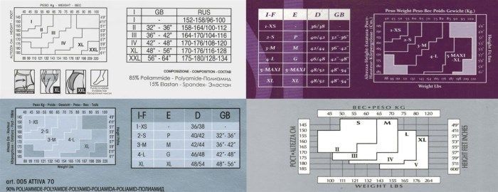 In addition, each package with tights on the back has its own size chart. It is easy to navigate on it and choose a product that will fit perfectly on the figure. When choosing a product to size, you should not try to buy tights less than you need. This will cause them to slip, crush, or tear quickly.
