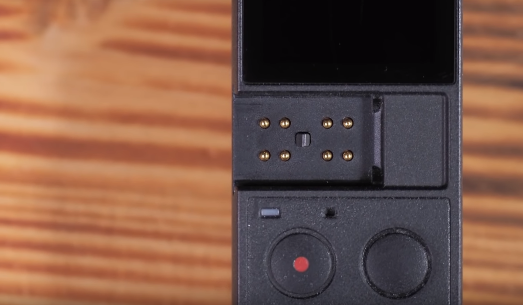 As for the Osmo Pocket, it has a similar arrangement of all elements. The only significant difference is the slightly smaller 1.08-inch screen, which, despite a slight reduction, looks tiny (however, this does not affect convenience too much - a matter of habit). But what you should pay attention to is the square aspect ratio of the screen. The fact is that when previewing, part of the picture will be cropped, and switching to the "correct" mode will reduce an already small image. Another drawback is the lack of a port for an additional microphone (the built-in one does not shine very much and is a usual "average").