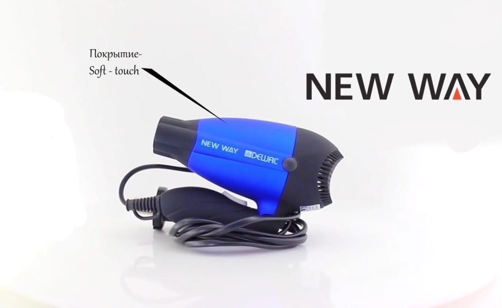 The smallest of the entire Dewal line, weighs only 270 grams. This model can only be used as a travel hairdryer, and no more. It is very compact in size, the handle can be folded and transported in a new way even in a bag of modest size. The soft-touch coating will ensure non-slip, which means there is less chance of dropping and breaking the hair dryer.