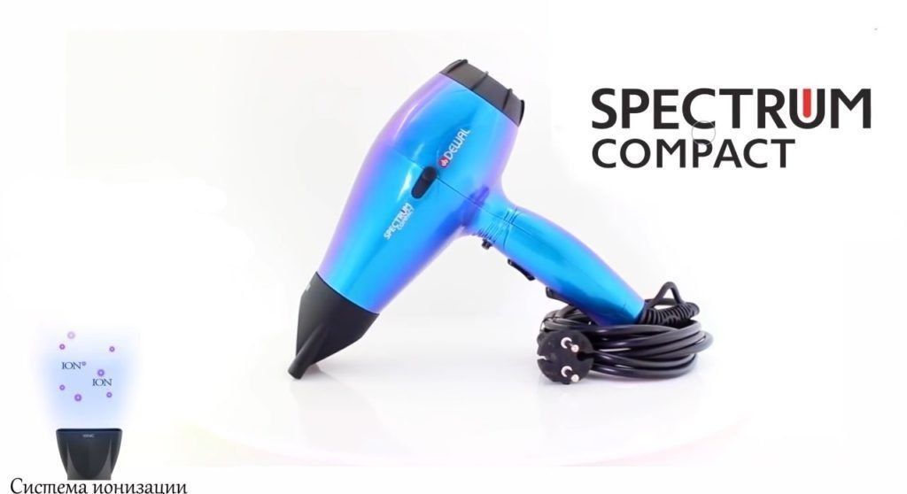 The Compact model differs from its “big brother” only in size. The power is the same - 2200 W, the convenience and stylish design are in no way inferior to the larger Spectrum model. Due to its small size, it is convenient to take it with you on trips and trips, so it will be suitable as a travel hairdryer.