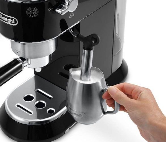 Stylish design is well combined with excellent functionality. Due to automatic production, you can safely burn yourself and enjoy a hot drink. Not a bad option that will take up little space in the kitchen. Equipped with a 900 ml water tank and a 350 ml small milk container. Powered by a standard 1.4 kW power. The total weight of the machine is only 4.5 kg, so it will be easy to carry it from place to place. It is especially convenient when the kitchen is located in a separate building (it is easy for owners of private houses to understand this). The average cost is 20 thousand rubles.