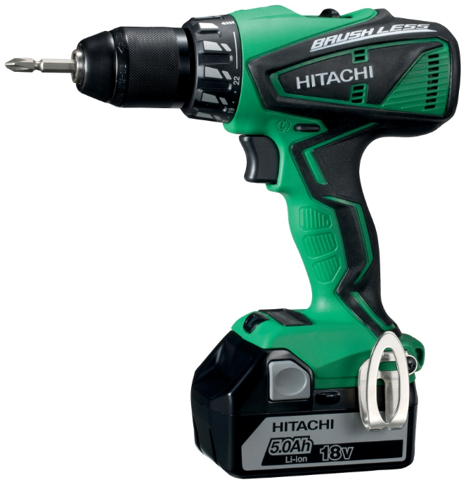 This screwdriver is designed for universal use. Depending on the processing material, you can select the desired mode, torque coefficient. The presence of a thin handle and a rubberized surface increases the convenience of using the device. A special holder allows you to attach the drill to the belt belt. It is found in almost all Hitachi models.