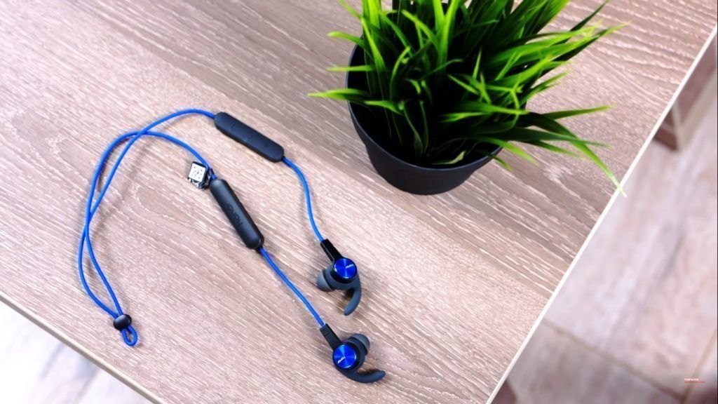 Small in size, reminiscent of Meizu. Not heavy and hardly felt on the head. They fit tightly in the ears, the main thing is to choose the correct size of the overlay. To prevent the device from getting lost, the manufacturer has thought of a magnetic insert. There are clips in the center for adjusting the length of the wire around the neck.