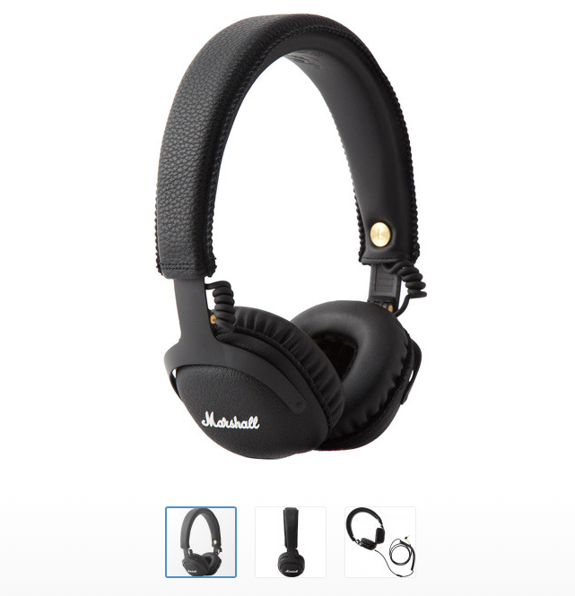 Headphones Marshall Minor can be bought in three colors - black, white and very, very black, that is, without elements of gold plating at a price of 4212 rubles per package.