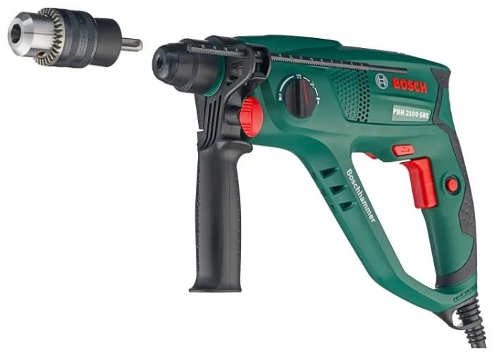 | BOSCH PBH 2100 SRE | SDS-Plus | 550 watts | 2300 rpm | 5800 bpm | 1.7 J | 2.2 kg |