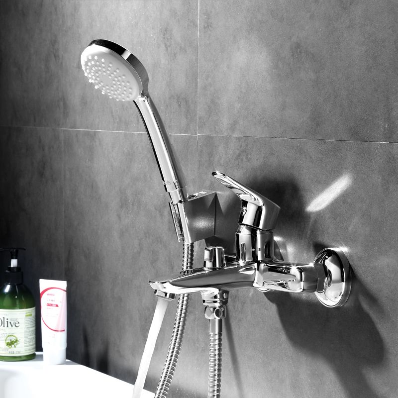 Bath faucet, single grip, brass, enlarged nickel-chrome plating, ceramic Softap cartridge, ceramic divertor, Neoperl silicone aerator.