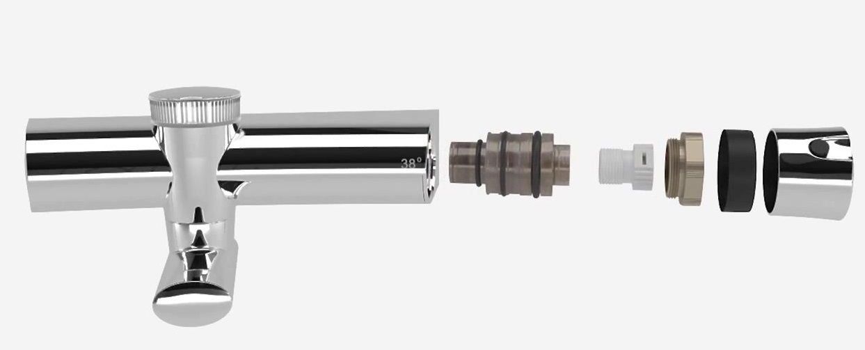 To adjust the temperature, a special handle is included with the mixer.After setting the necessary settings, it can be removed and replaced with a plug, protecting it from unnecessary intervention by children or unauthorized persons.