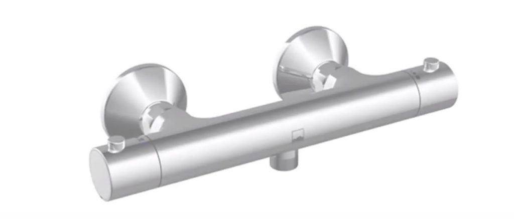 On both sides of the mixer there are valves for temperature and pressure regulation. A temperature valve with a switch and a limit button allows you to set the water heating up to 38 ° C.