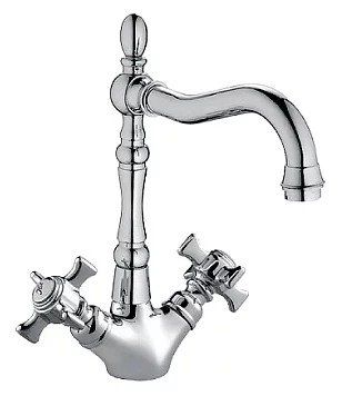 This model is a representative of the double wishbone type, made of brass and plated with chrome. The design has a swivel spout, made in a classic form.