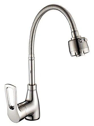 The faucet is made of chrome with a laconic design. The classic spout is swivel.