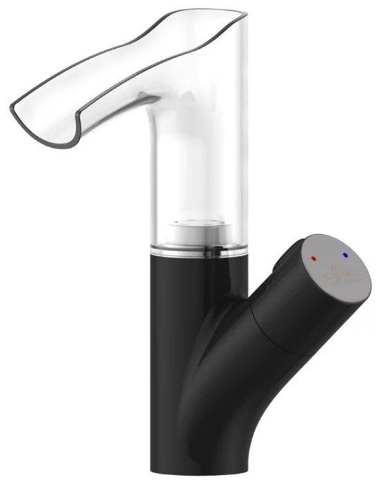 This model is made in white and black and has an unusual appearance. To use the device, it is necessary to connect a cascade plastic spout with an LED element.
