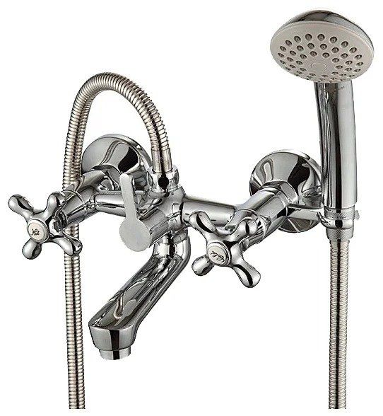 The double lever mixer is suitable for showers and baths. The body is made of brass and chrome plated.