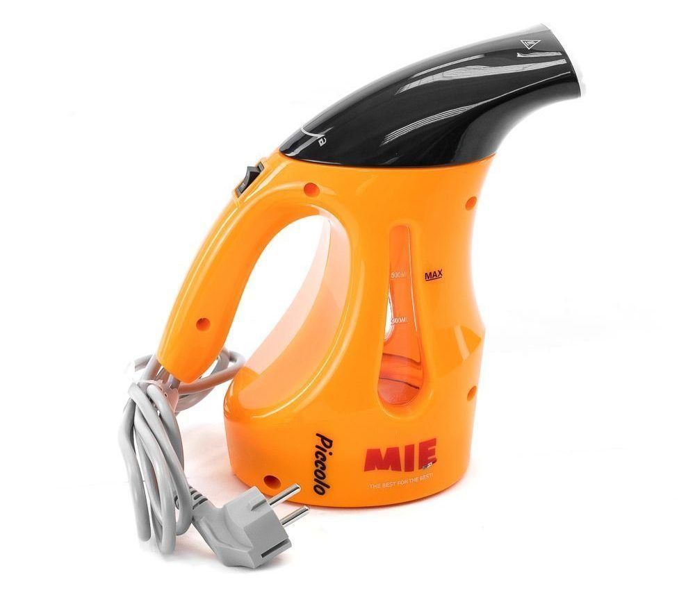 Small in size and inexpensive in cost model, simple and convenient to use. The steamer has a striking appearance - the design of the device is made in the corporate black and orange colors, and has a low weight. MIE Piccolo is designed for vertical steaming. Despite its modest dimensions, the steamer has good power. Thanks to the continuous flow of steam, it easily straightens creases, giving the fabric a fresh, neat look. The start button is located on the handle, the water tank is equipped with a transparent compartment for monitoring the water level.