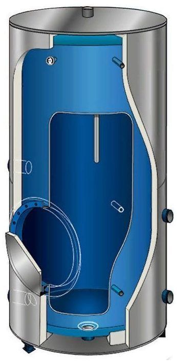 A water heater for floor-mounted installation with temperature receiving from heating systems (centralized or autonomous), through a heat exchanger or through a steatite heating element. The Indirect & Combi Steatite Floor Standing model has a spiral heat exchanger with an area of 0.66 m² and a material of manufacture - 3mm enamelled steel. The design guarantees the temperature of water heating up to 50 ° C for 25 minutes.