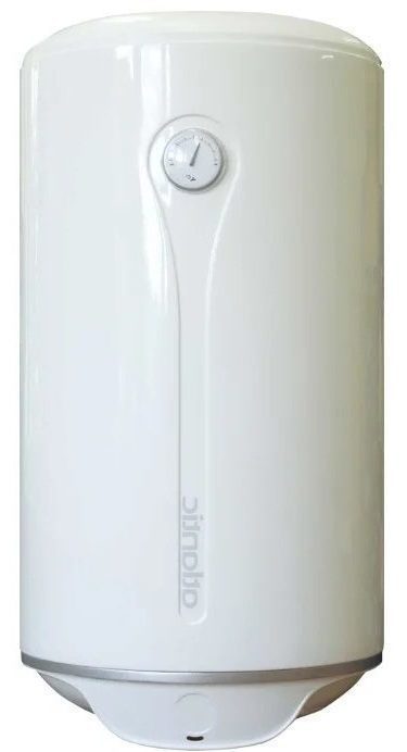 Electric storage water heater with several points of water intake and copper heating element. Designed for vertical installation with bottom piping and wall mounting.