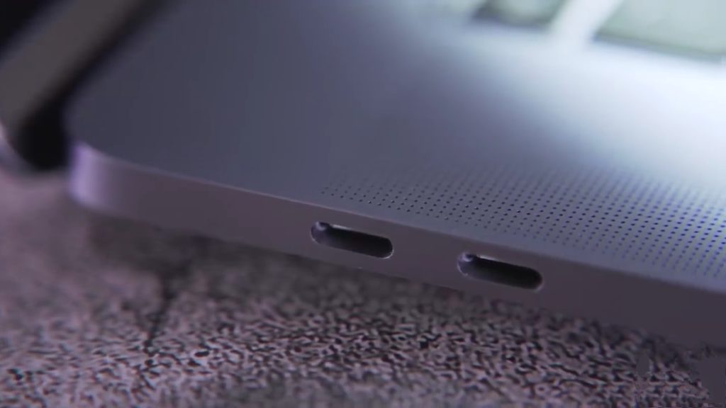 The increase in the overall dimensions of the unit in no way affected the addition of interfaces on the side faces of the unit. There is the same set of Thunderbolt 3 connectors of four units, each of the ports can be used to establish contact with both an external video card and a charger.