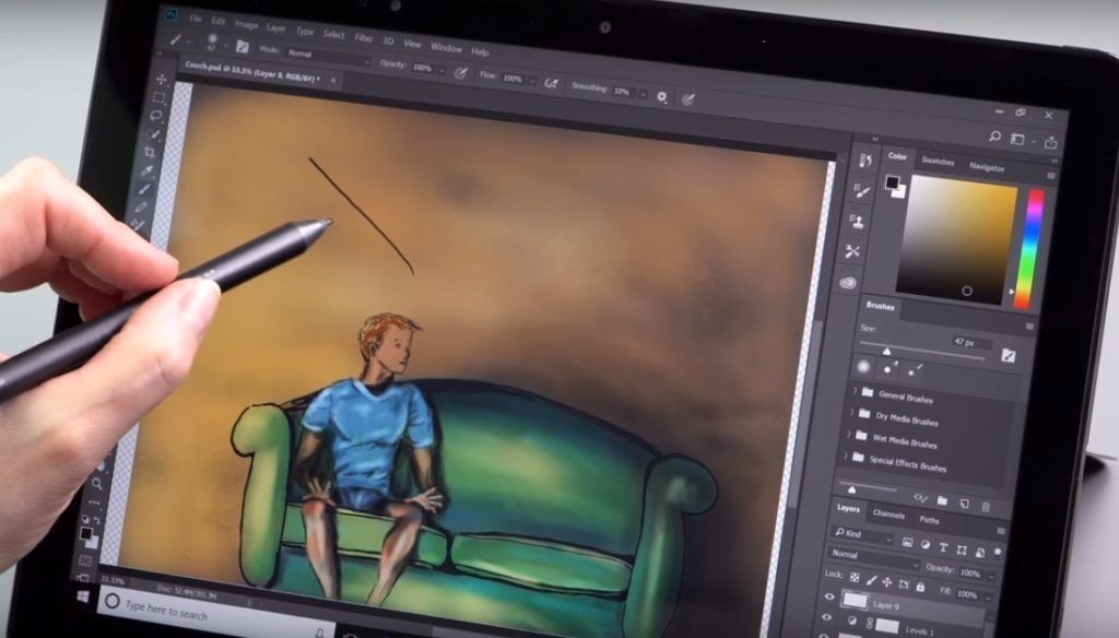 The manufacturer has equipped the novelty with a 12.3-inch display with FullHD resolution (the number of pixels is 1920 × 1080). The aspect ratio of the screen is 3: 2. The entire front of the device is covered with Gorilla Glass 4, which is scratch and shock resistant. The tablet uses an IPS matrix.