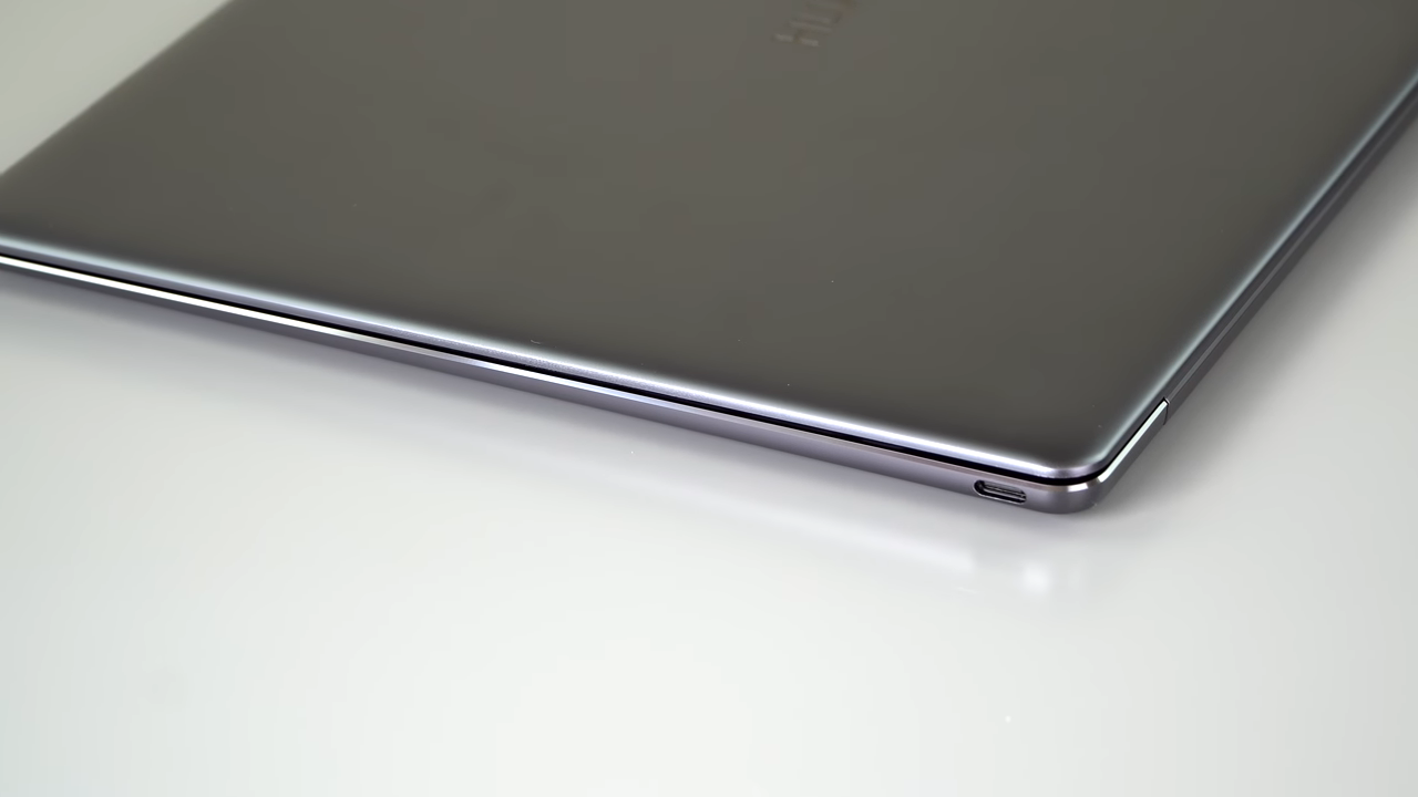 The side faces are monolithic, with two interspersed USB Type - C and a headphone jack. The second highlight is the smooth cutout for more comfortable lifting of the lid.