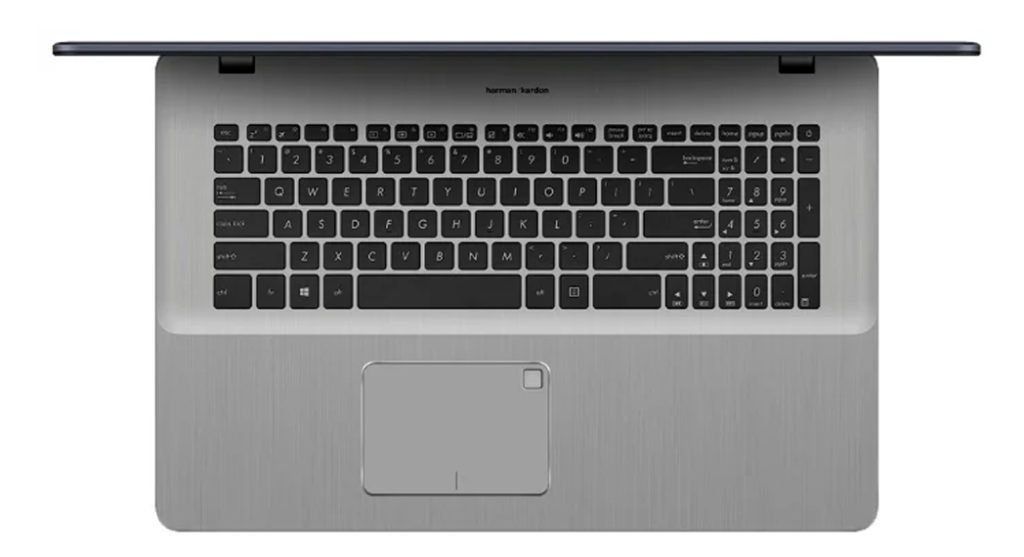 Like the entire VivoBook Pro line, this laptop has an audio system developed in conjunction with Harman Kardon, whose emblem is so proudly located on the computer case (and for good reason). As mentioned earlier, the stereo system from this company has good data and it is a pleasure to listen to the sound from it. Although some users note an increase in the hoarseness of the sound if the recording itself is of poor quality.