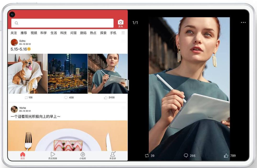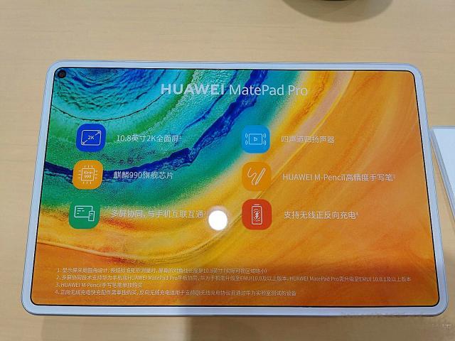 The MatePad Pro runs Android 10 with EMUI 10. The tablet is a rectangular design with a small display cutout in the upper right corner and proportional bezels around the screen, which provides a 90% screen-to-body ratio.