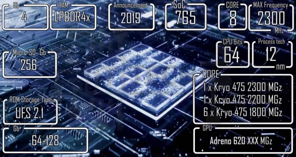 The manufacturer has presented two versions of the device: with the size of the internal storage of 64 and 128 GB. RAM, where data and codes of operation of applications and main programs are temporarily stored, in both cases is equal to 4 GB. A dedicated slot for a microSDXC memory card is installed at the end. Its use allows you to expand the memory by 2 TB. The smartphone is powered by a 2026 octa-core processor based on a 12nm process technology. Eight identical cores of the Kryo 475 architecture are responsible for performance and are divided according to the 1 + 1 + 6 scheme with a clock frequency of 2.3 / 2.2 / 1.8 GHz, respectively. The register processes 64 data bits in 1 clock cycle. The action of the processor is accompanied by the GPU Adreno 620 accelerator. Scrolling of menu and tab pages is smooth, web pages are loaded quickly. The processor allows you to play simple games at minimum settings. The used platform is Android 10th version, without additional skins. The interface contains standard icons, menus - all the necessary applications.