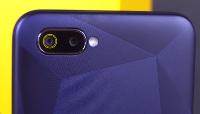 In the upper left part of the panel is a slightly convex module of two main cameras and an LED for a flashlight and flash. At the bottom - the inscription "REALME".