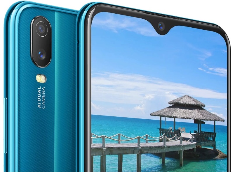 At the bottom there is a speaker, a microphone, a 3.5 mm headphone jack, a micro-USB 2.0 socket for a charger. The power and volume buttons are visible on the right side of the case. On the left side there is a tray for cards. The cover is made of plastic with a glossy finish. The cover has a holographic pattern in the form of stripes, shimmering in the sun, and a gradient that smoothly turns to black at the bottom. Available in three exciting colors: Coral Red, Aquamarine Blue Mineral Blue and Jade Green Jade Green. On the screen at the top of the display in the center, you can see a semicircular cutout in the form of a smooth flowing droplet with a front camera.