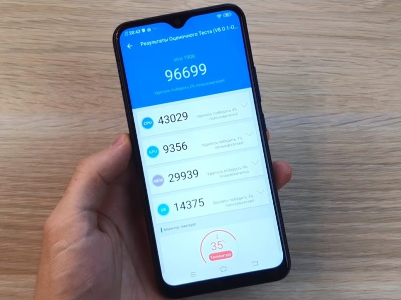 The hardware characteristics indicate good performance for such a budget device. When passing the test, usually expensive phones show heating up to 40 - 45 degrees. Vivo Y11 (2019) showed a maximum heating of 35 degrees, that is, it remains almost cold. During active operation, the device will not heat up. The processor allows you to play toys from the Play Market. At medium and standard settings, any game runs smoothly, without freezing.