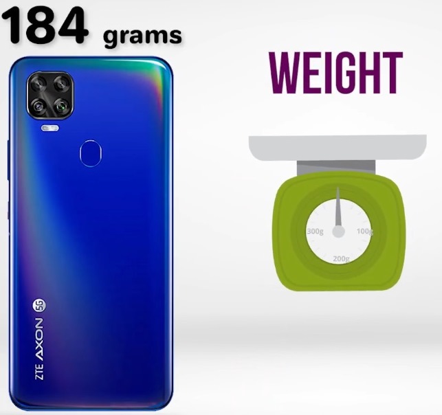 The new model is made in the form of a classic candy bar, seemingly harmonious and stylish. The frames are very thin, made of aluminum, almost invisible from the front. The dimensions of the device are as follows: height 162.7 mm, width 76.3 mm, body thickness 8.8 mm. The smartphone is heavy in the hand, its weight is 184 grams. The front camera is located in the upper left corner of the screen in the shape of the letter "O". The main camera is built into the back cover, in the upper left corner. The block is made in the form of a square, there are 4 lenses in it. A separate LED flash is built under the unit. Further in the central part of the lid is a fingerprint scanner. In the lower left part of the case, in the recumbent position, the corporate logo of the ZTE Axon line looks impressive, with the addition of 5G in the circle. On the left side there is a classic variant of the location of the volume control and power on / off buttons. On the right is a slot for installing SIM cards and memory cards. On the shelves, the smartphone will appear in two color options: Aurora Glamor Aurora Glamor and Aurora Glacier Glacier. Both colors are interesting, with iridescent tints. In a transparent case, the model will look impressive and stylish.