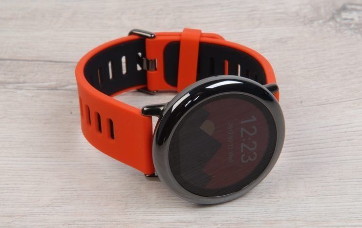 The design of the model, also referred to as the "Sport Smartwatch Pace", is pleasing to the eye. Stylish hypoallergenic silicone strap in two colors: one side is black, the other is red, fastens on the wrist with either side, for this you select the desired color and attach to the watch. The clasp is adjustable. This solution allows the model to be used by the male and female half.
