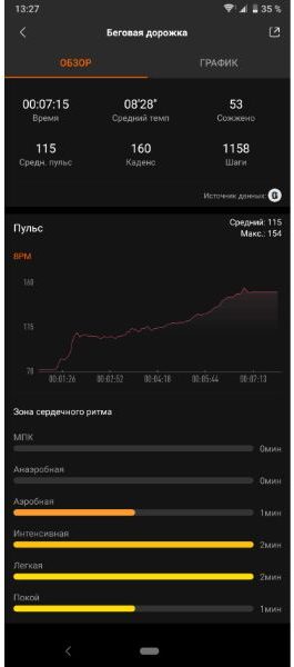 Consequently, there is no continuous monitoring of the pulse in real time, and the smallest measurement period is one minute, but this is fully enough to monitor the heartbeat. In the continuous heart rate monitoring mode, the program displays the following statistical data to users: