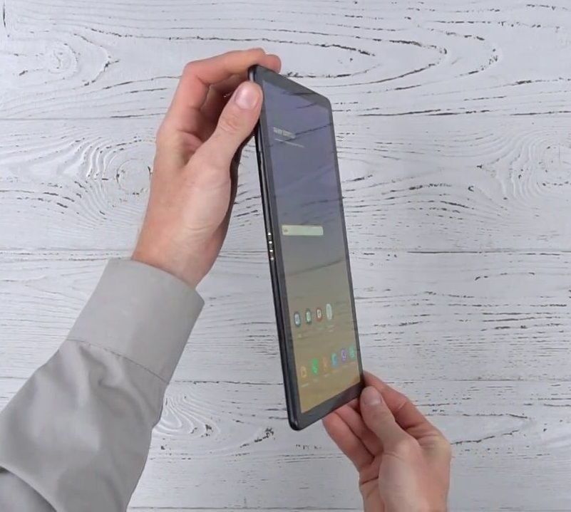 At first glance, the Galaxy Tab S4 appears to be identical to the Galaxy Tab S3, but there are slight differences. The dimensions of the tablet have slightly increased and are 249 * 164 * 7.1. Device weight - 483 g.