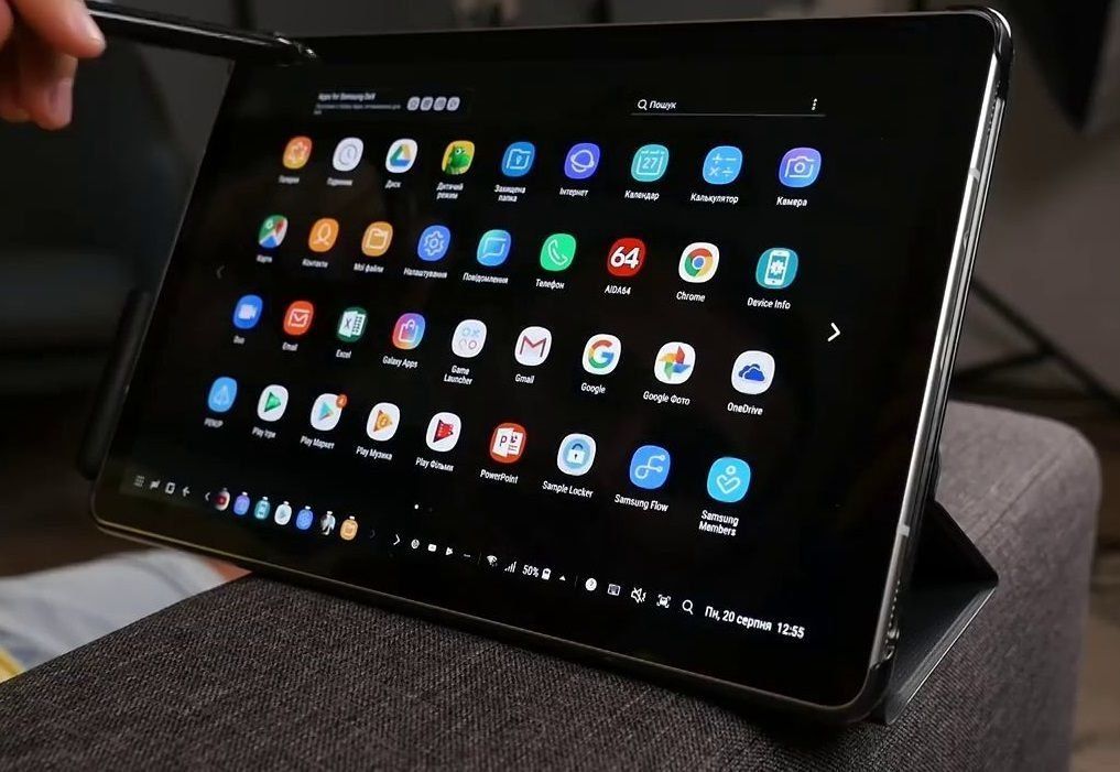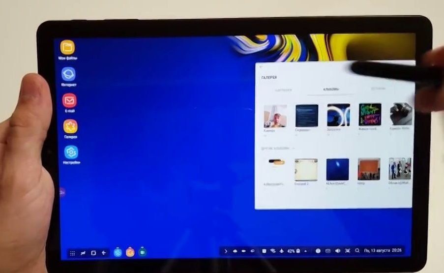 The main feature of this business device is the DeX mode without additional docking stations and a monitor. With a keyboard and mouse, the tablet turns into an almost full-fledged computer with a desktop and multi-window mode. The DeX interface allows you to switch between applications and supports multitasking mode.