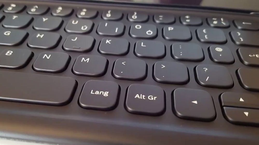 Separately, it should be said about the keyboard. It is not included and must be purchased separately, but its presence turns the tablet into a full-fledged laptop. 64-key keyboard is integrated into the case. The keys on it are located at a distance from each other, so it is comfortable to use. The only thing that complicates the workflow is the dedicated button on the right for switching languages (Lang).