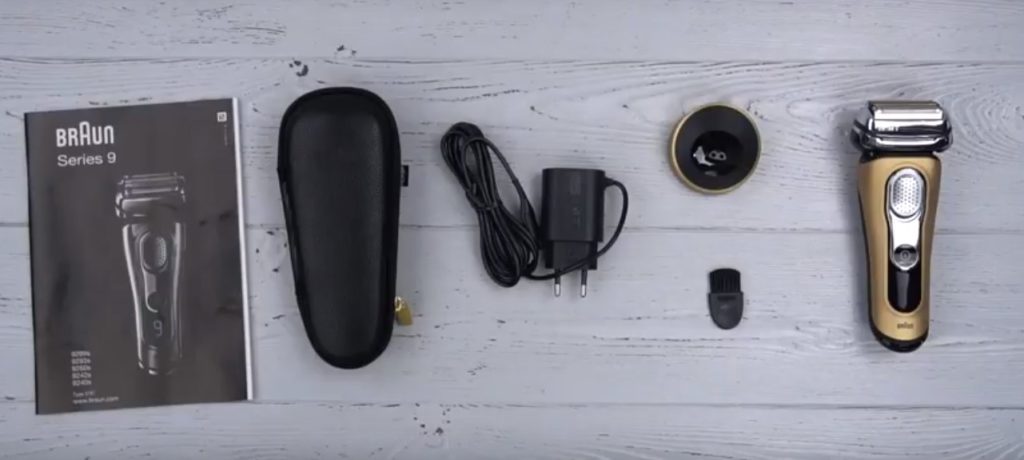 In addition to the electric shaver itself, the kit includes a travel case, a charging stand, a cable and a cleaning brush.