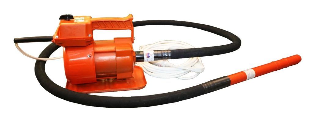 The most popular type of vibrator with little efficiency. The design includes a power drive, flexible shaft and mace. During rotation, the concrete solution is compacted and distributed into all empty cavities. An electric motor is usually used as a power drive, to which a flexible shaft is connected. The shaft consists of a protective case that ensures human safety during operation of the vibrator, inside which there is a cable, with its help, rotation is carried out.
