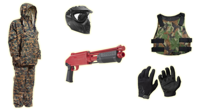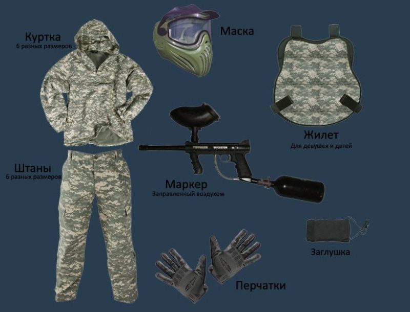 Such a bright and colorful game, where fireworks from breaking capsules constantly appear, cannot take place without special uniforms. It is designed to ensure complete safety of the player on the battlefield and to protect clothing from paint bloopers.