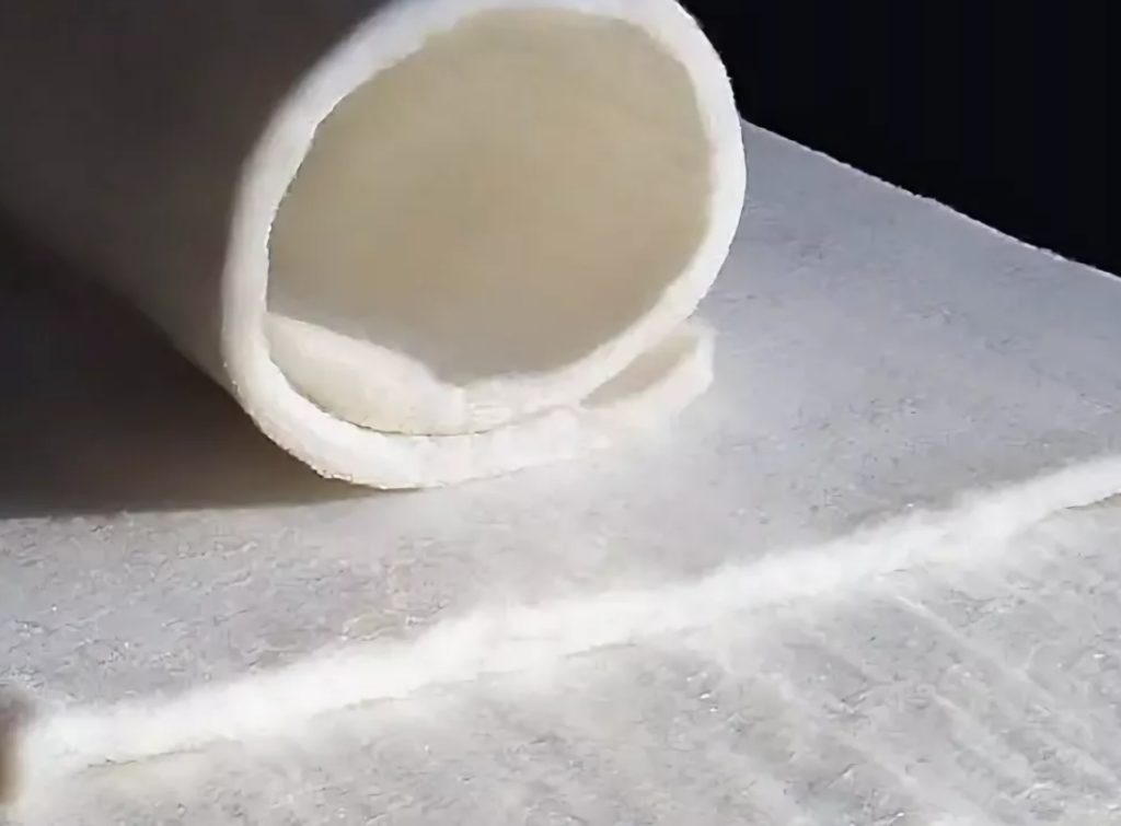 Available in rolls from 5 to 15 meters long. Withstands temperatures up to 1150 degrees. The thickness of the web is 20 cm. It is made of silica fibers by melting aluminum and silicon oxides in a furnace. To make the fiber soft and flexible, inorganic components are added to it. They are used as insulation of support for continuous furnaces, for insulation of arches, linings, heat-treatment furnaces, for elements of blast furnaces. For insulation of electrical installations, chimneys, steam lines, boiler rooms, door seals and in many more cases.