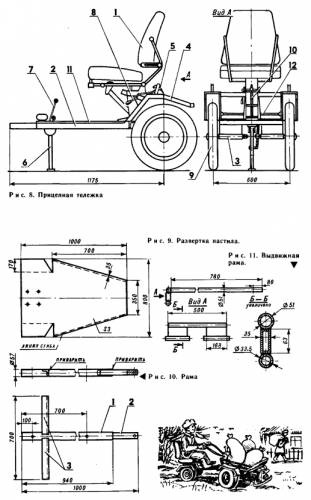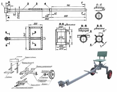 Assembling the adapter yourself at home is not so difficult. In fact, it is an ordinary trailed cart. The trailer is designed in such a way that the center of gravity of the entire structure falls on the supporting frame. The most difficult mechanism here is the mechanism of adhesion to the MB, since how long the device will work depends on its strength.