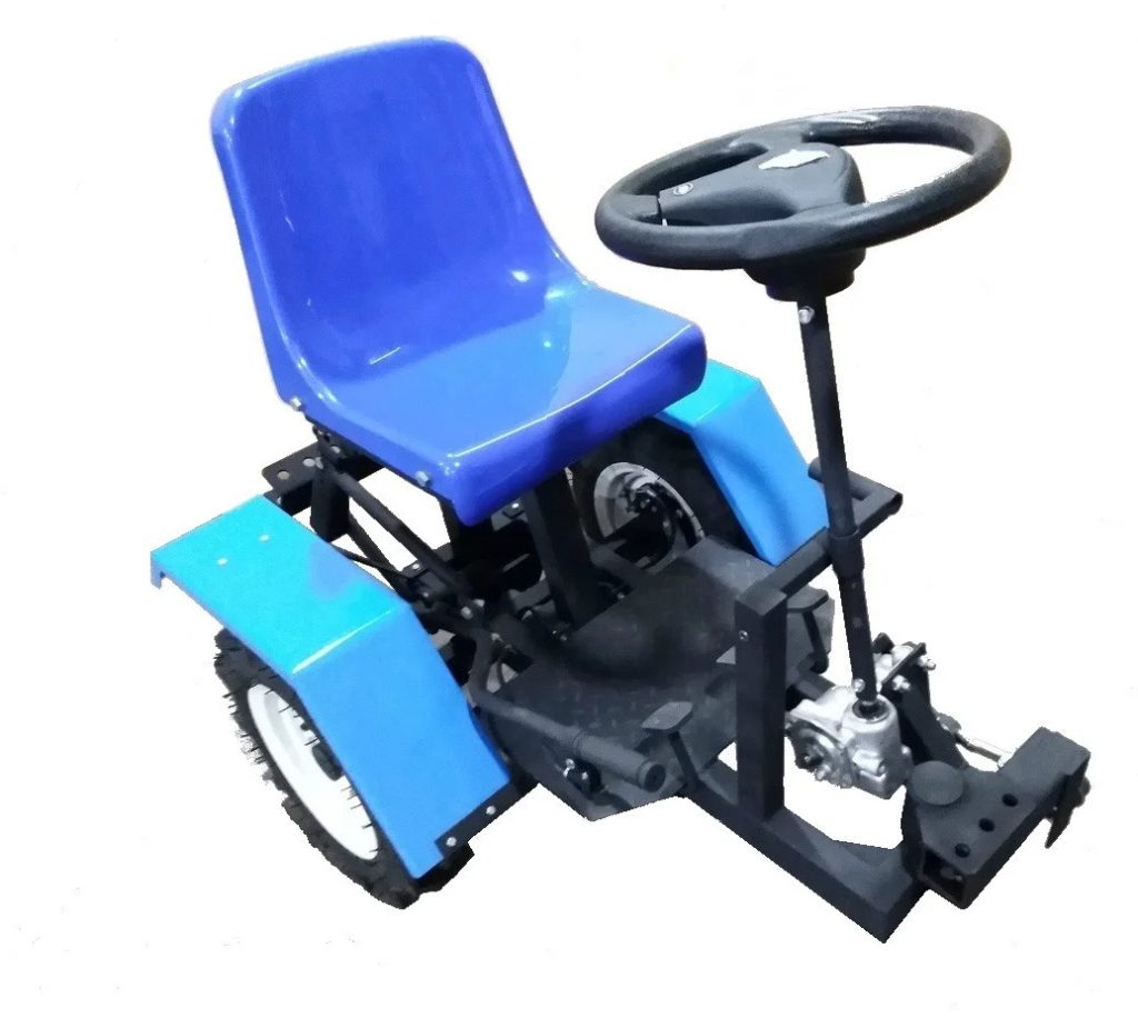 KhorsAM IS-2 is produced by the Guryev Metallurgical Plant. It is a mini-trailer with a driver's seat and steering. Used for agricultural. work on sites in almost any climate. Docks with MTZ, turning it into a real mini-tractor. The handlebars have a comfortable motorcycle shape and are flush with the seat.