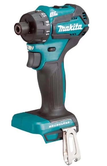 In order to adapt the operation of the tool to the material, 16 torque steps are provided. The Makita DDF083Z also comes with a preinstalled controller that will not let the device fail due to overheating or overload. For work in the dark or in poor lighting conditions, an LED lamp is installed. There is a metal clip for easy transfer of the product. So, the device can be fastened to a belt or a stand.