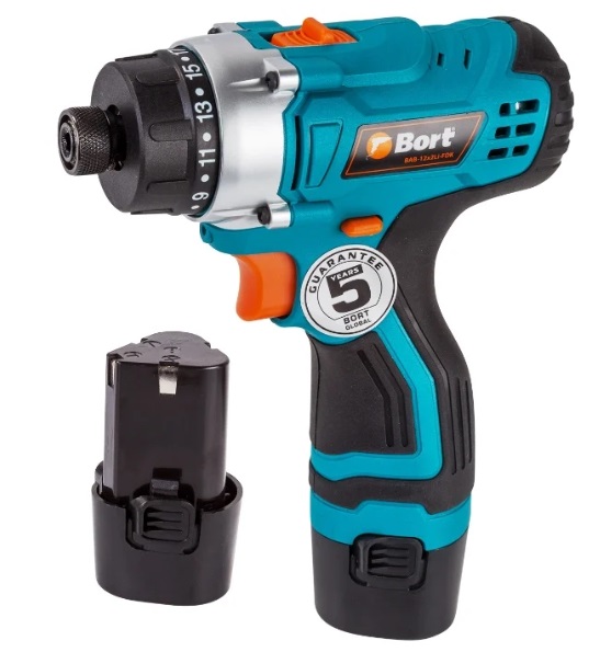The maximum torque is 35 Nm and the maximum rotation speed is 1,350 rpm. The set includes lithium-ion batteries with a capacity of 1.5 A / h, the full charge time of which is 1 hour. The weight of the Bort BAB-12X2LI-FDK is 1.4 kg.