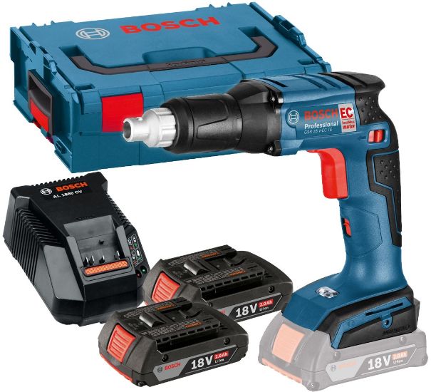 The Bosch GSR 18 V-EC TE 0 has a brushless motor. The maximum torque is 25 Nm. The rotation speed is 4200 rpm. The battery capacity is 4 Ah. A full battery charge is enough for 3,400 screws. It also has a system that protects the batteries against overload, overheating and full discharge.
