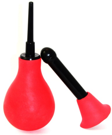 To fill the pear, you can use one of the following products: plain water, cleaning solution, lubricant.