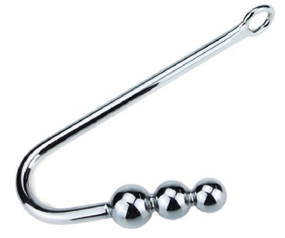 Another model from the NoEnName_Null brand with balls on a hook, designed for BDSM games. The beads go one after another, they are of different sizes (small, medium, large) made of metal resistant to corrosion; easily penetrate the anus due to mirror dusting and a small amount of lubricant. At the other end of the structure there is a metal ring for easy adjustment of the penetration length and its extraction from the anal.