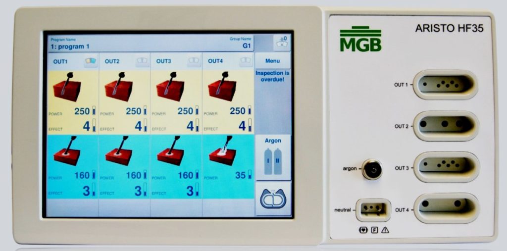 Belongs to the category of fully functional. Versatile, equipped with argon-enhanced coagulation. Basic set: