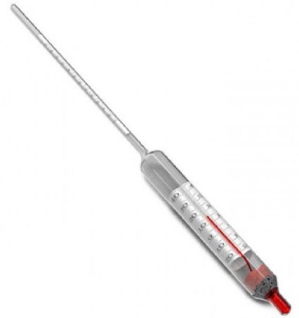 The hydrometer-alcoholometer is an easy-to-use liquid density meter. This tool is essential for making wine, moonshine and other types of alcohol. It shows what percentage of alcohol the drink contains and whether the result was exactly the one that was originally planned.