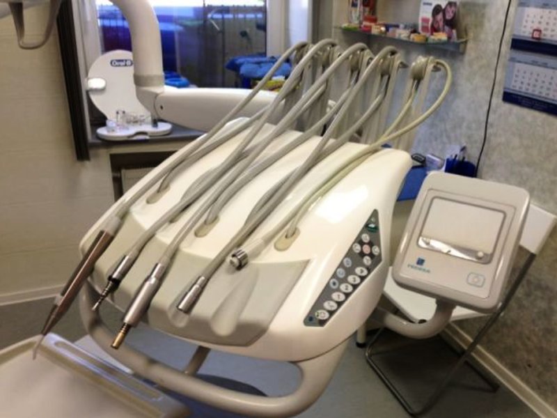 This device is called the assistant's workplace. The suction unit is considered part of the product of modern dental devices. It is usually located at the base, behind the spitting device. In addition to the devices for suction of liquid, the suction unit has other control functions (for example, raising and lowering the chair).