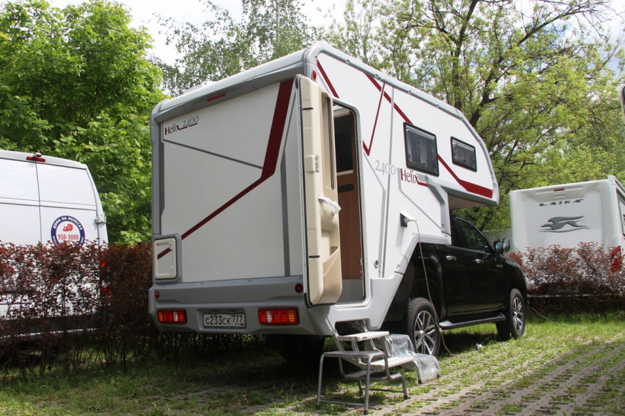 A universal removable module of Western production, capable of being installed on foreign pickup trucks of the most common models. It has increased comfort: in addition to the standard set of amenities, there was a place for a refrigerator and a washbasin. The outer side wall is equipped with a folding sliding sun awning.
